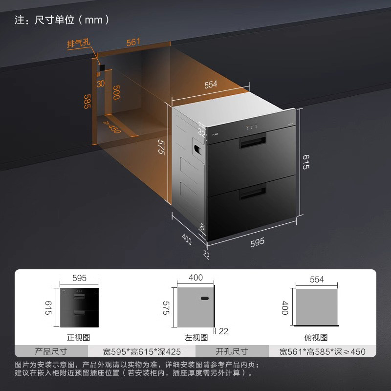方太J51ES消毒柜家用小型嵌入式不锈钢厨房碗筷烘干消毒碗柜正品