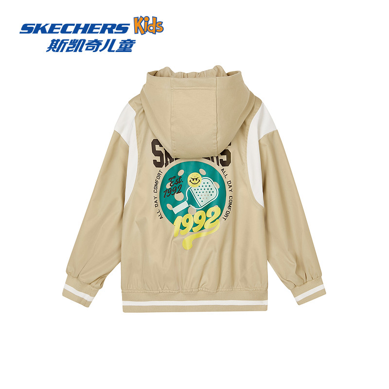 Skechers斯凯奇2025年夏季新款男童休闲运动风梭织连帽外套