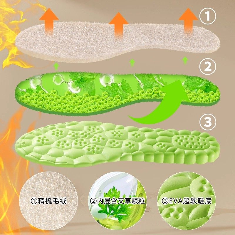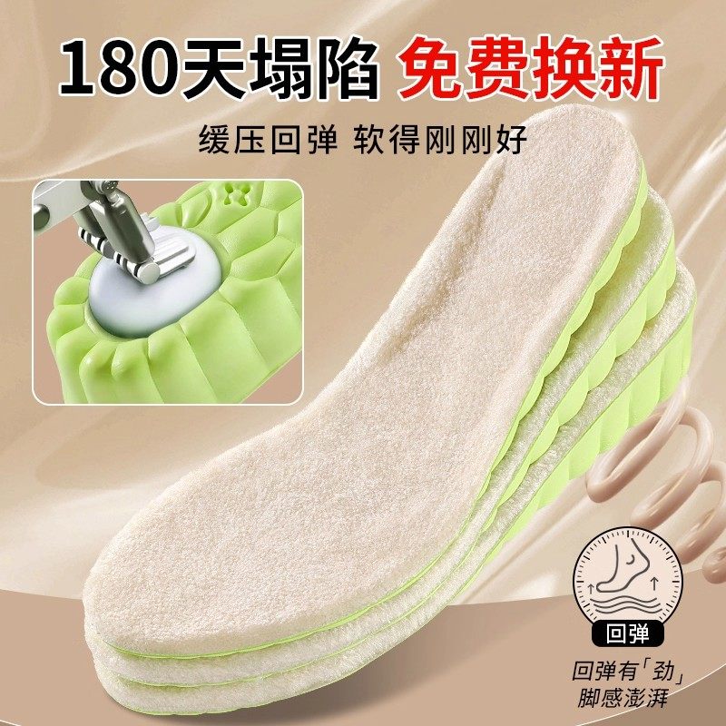 羊毛保暖增高鞋垫艾草防臭内增高鞋垫男女不累加绒加厚棉舒适吸汗