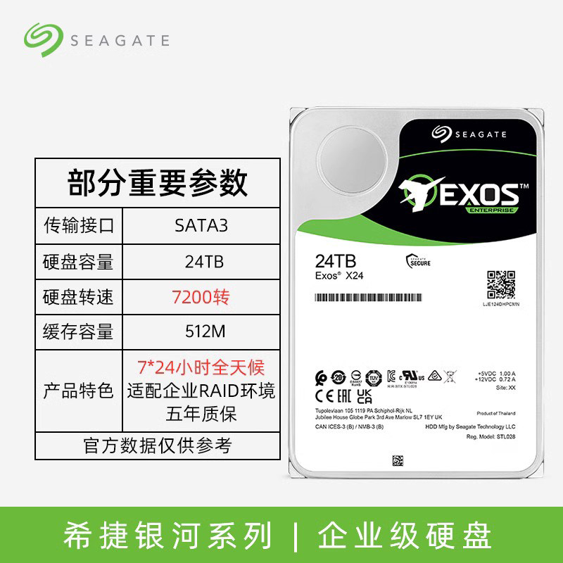 Seagate希捷银河24t机械硬盘企业级服务器大容量官方旗舰店氦气盘