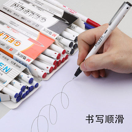 晨光按动中性笔黑色笔速干顺滑高颜值红蓝碳素笔考试办公用签字笔