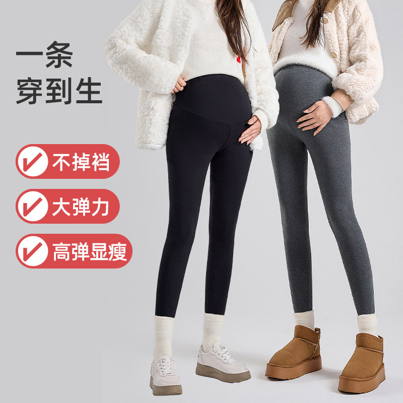 婧麒孕妇打底裤秋冬季外穿加绒加厚羊羔绒不勒肚子保暖棉裤孕妇装