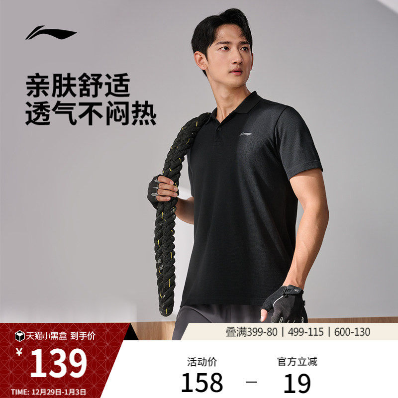 李宁POLO衫男士夏季健身男装翻领商务上衣透气运动短袖T恤