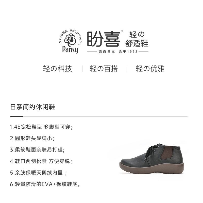 Pansy盼喜日本女鞋一脚蹬轻便加宽舒适加绒保暖百搭休闲高帮鞋
