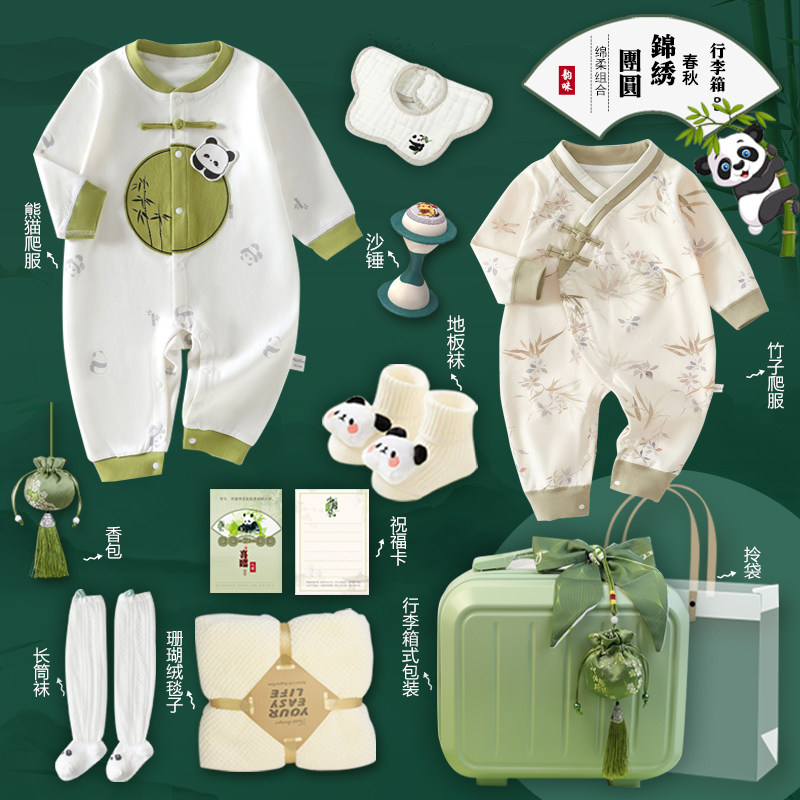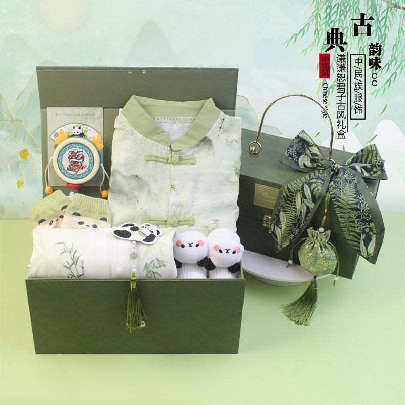 中国风春夏男宝宝汉服周岁礼物初生婴儿满月礼服新生的儿见面礼盒
