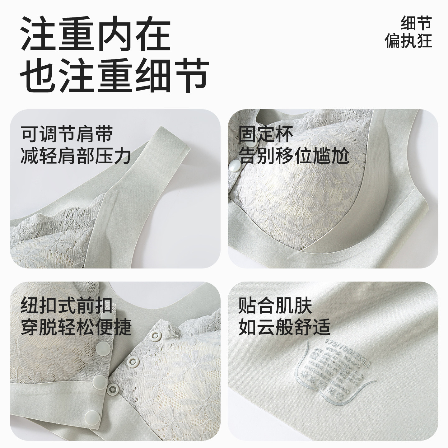 润微提拉女王内衣女大胸显小无痕大码调整防下垂收副乳粉底液文胸