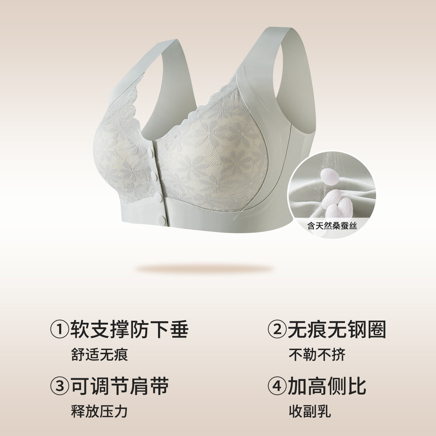 妈妈内衣女无钢圈聚拢中年妇女大码胖mm防下垂收副乳前扣文胸罩