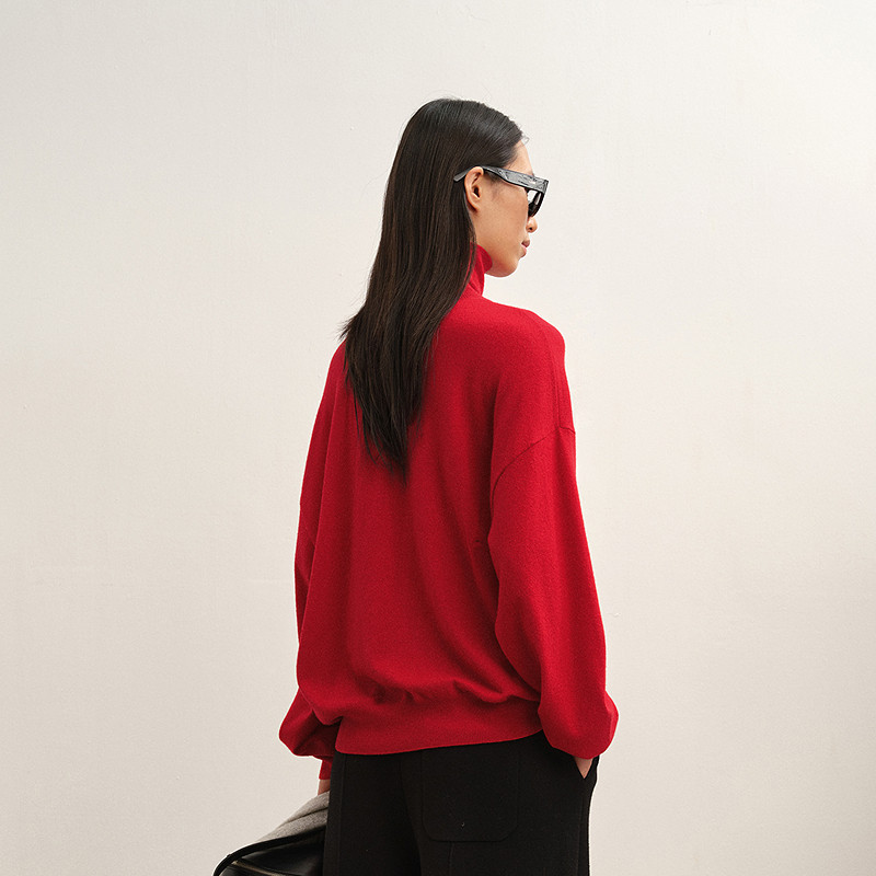 【商场同款】LESS2025冬新款打底高领红色针织衫含羊绒2P0314680