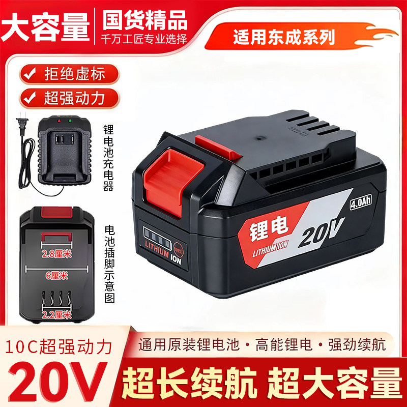 适用东成锂电池20V电动扳手电钻角磨机切割机电池充电适配大容量