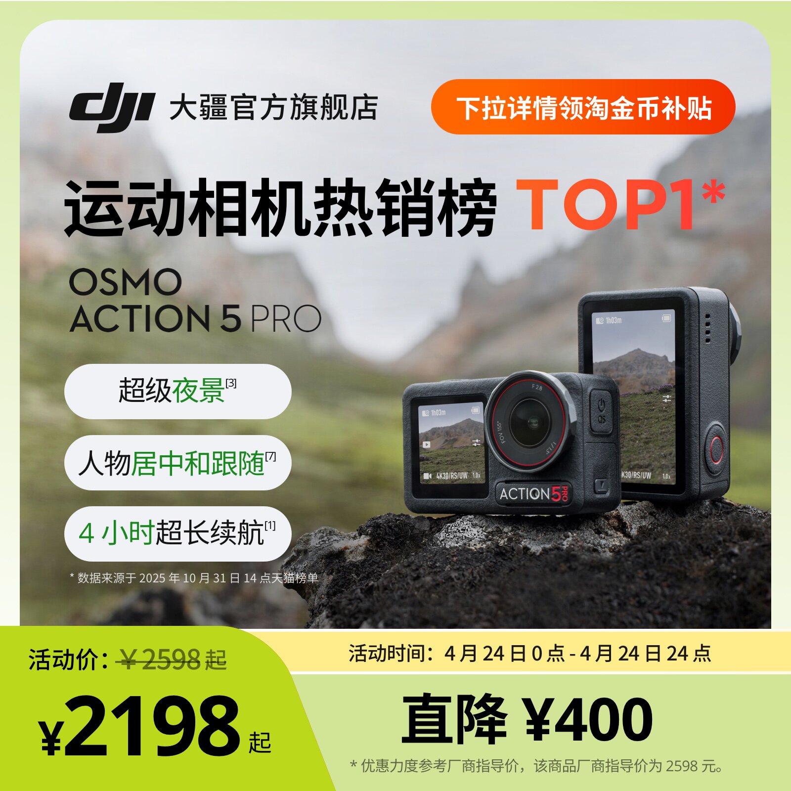 大疆 Osmo Action 5 Pro 运动相机 4K防抖户外摩托骑行滑雪摄像机