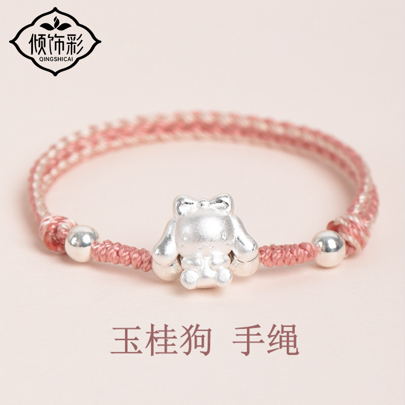 足银999玉桂狗手链手工编织可爱转运珠送小朋友儿童生日元旦礼物