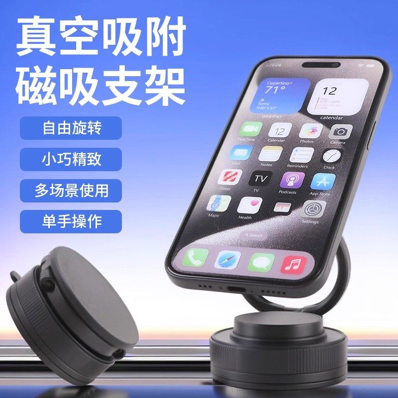 真空吸附磁吸车载手机支架2025新款吸盘车内导航手机架magsafe无线磁吸伸缩折叠便携架子墙壁通用神器