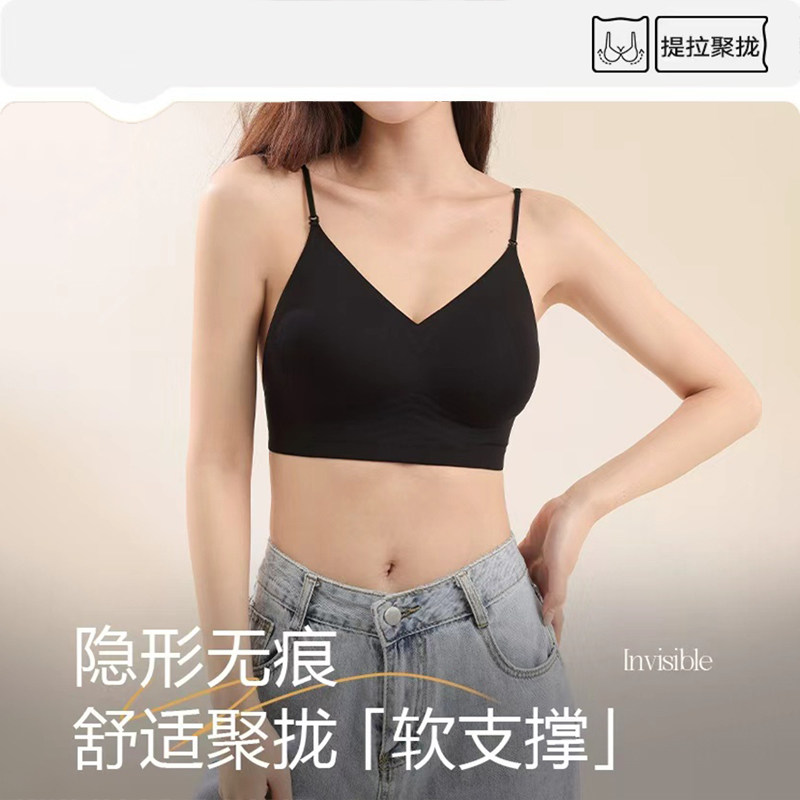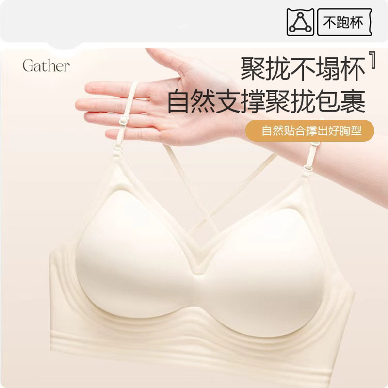 无痕内衣女小胸聚拢夏季薄款运动一体美背心式固定杯无钢圈文胸罩