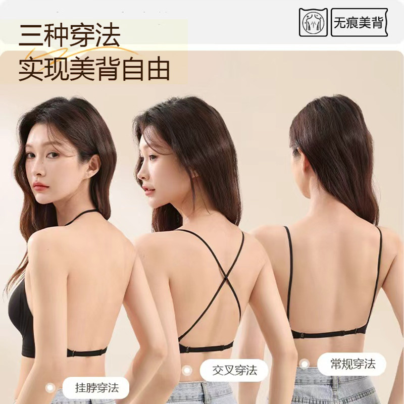 无痕美背抹胸内衣女小胸聚拢可外漏细肩带一体固定杯背心式文胸罩