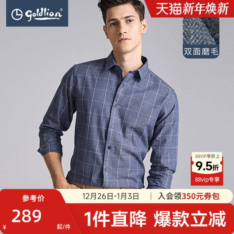 【纯棉磨毛】金利来秋冬男士柔软舒适尖领格子商务休闲长袖衬衫男