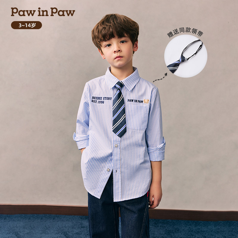 【全棉】PawinPaw卡通小熊童装26年春夏季新款男童条纹休闲衬衫