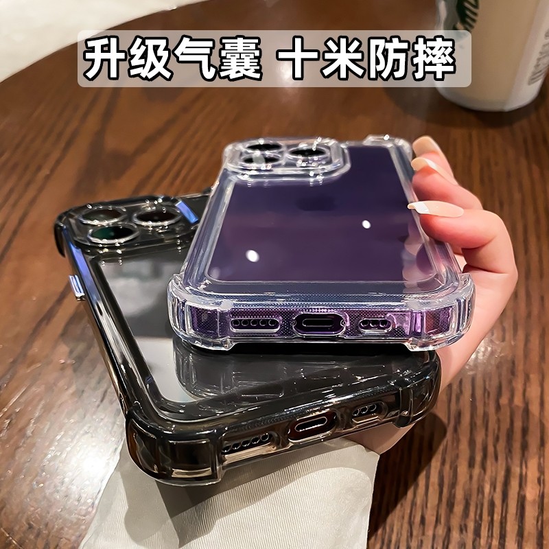 简约高级感适用苹果14手机壳17pro气囊iphone13透明16pro全包max防摔14promax硅胶11/12男x/xr/8plus女15pro