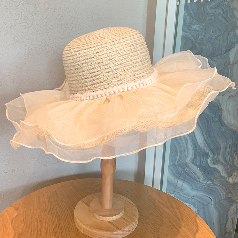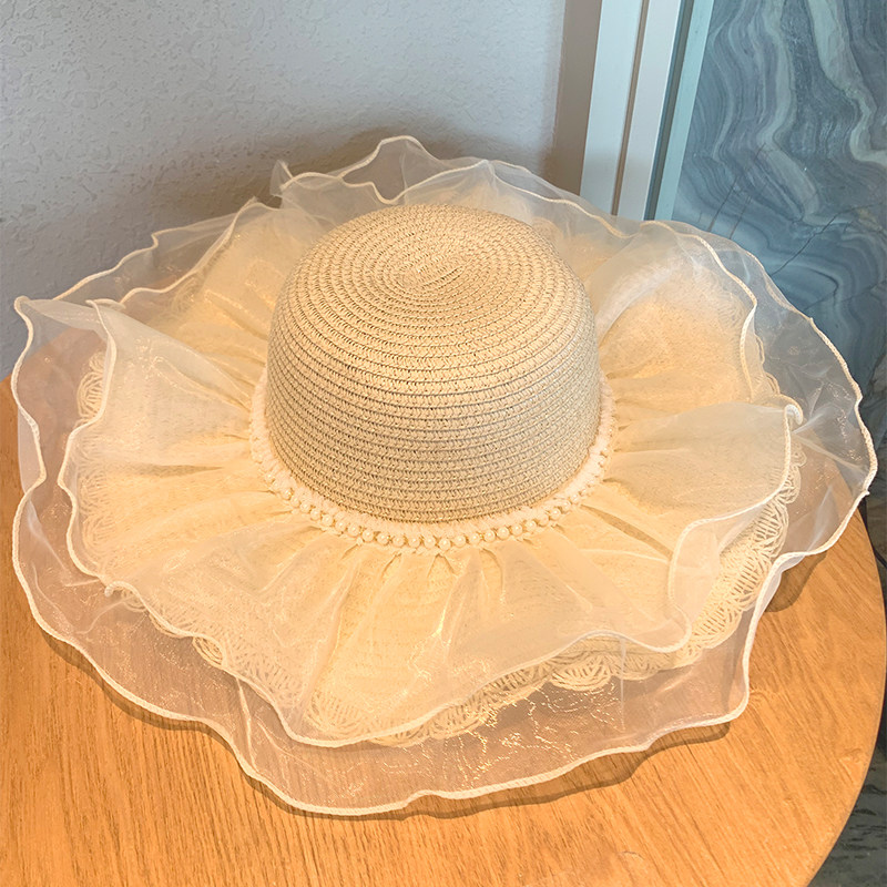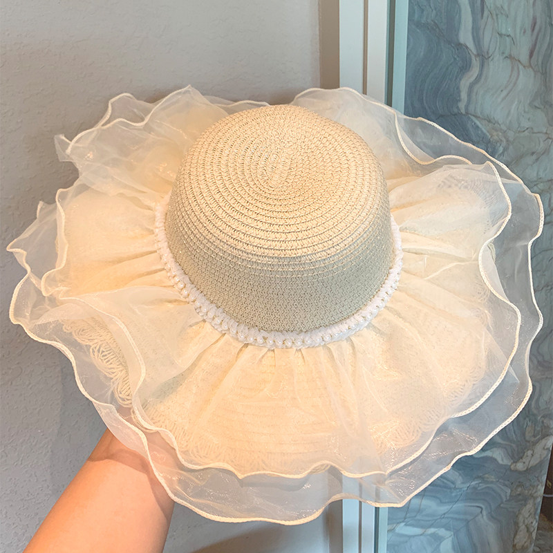 超仙网纱防晒帽女夏季草帽新款遮阳帽度假太阳帽海边沙滩帽大帽檐