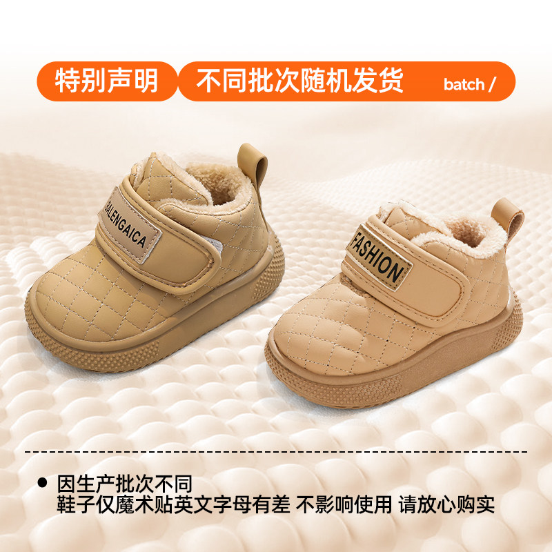 婧麒2025冬季婴幼儿学步鞋加绒保暖软底防滑儿童棉鞋0到3岁宝宝鞋