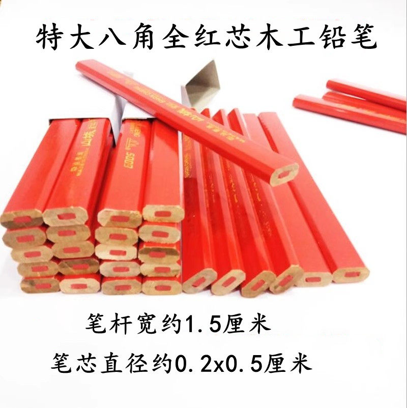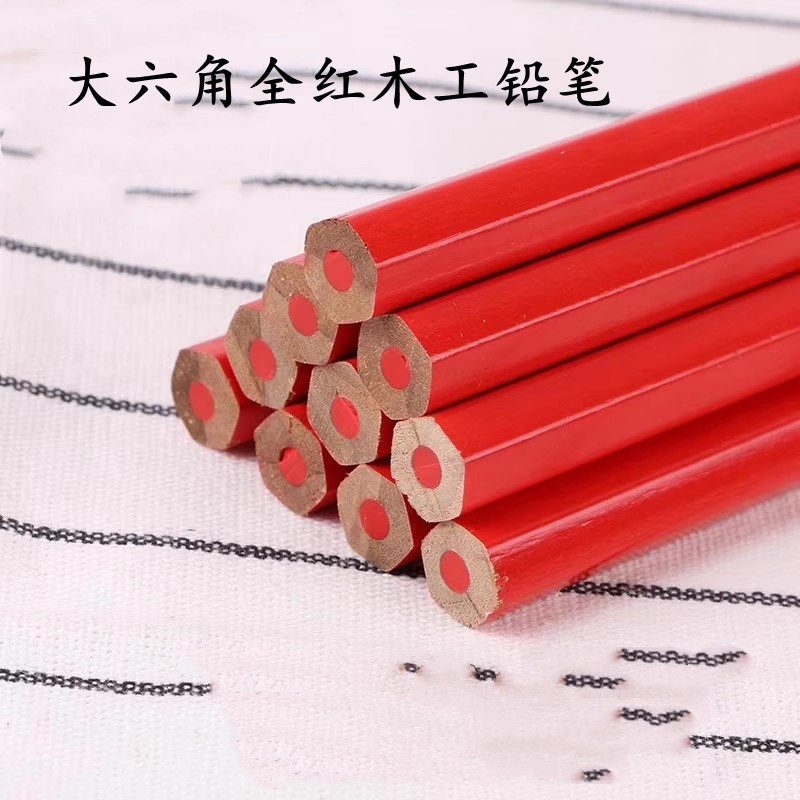 木工泥工用全红特大特粗六角红芯红色工地画线绘图绘画铅笔记号笔