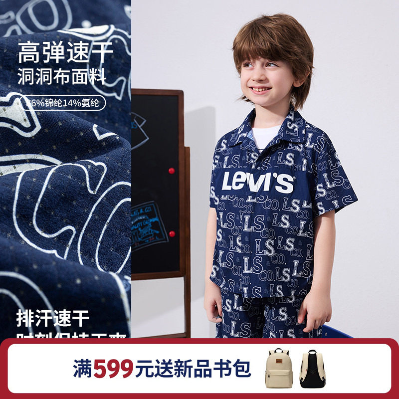 【商场同款】Levis李维斯儿童男童衬衫外套2026夏季新款满印上衣