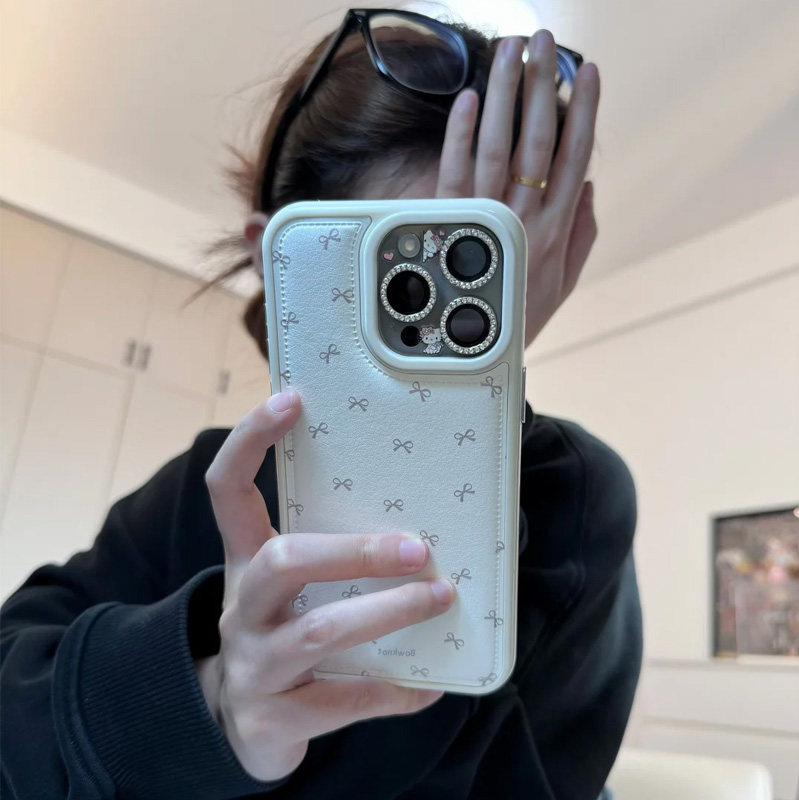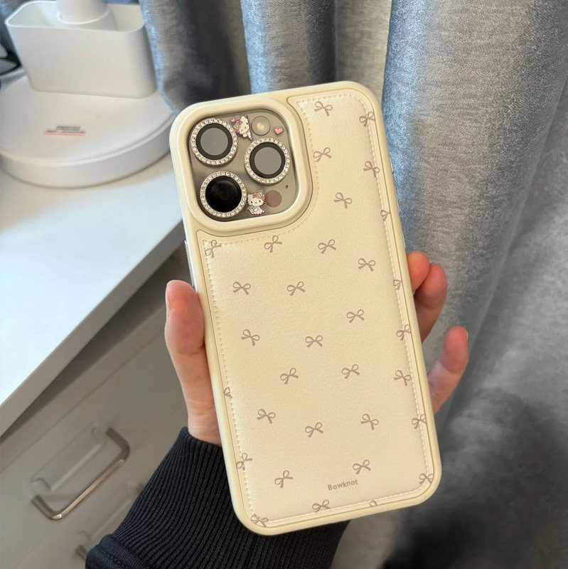 ins日系文艺满屏蝴蝶结皮纹适用苹果17ProMax手机壳iPhone16pro小清新15plus鼓包14甜美13简约12防摔11保护套