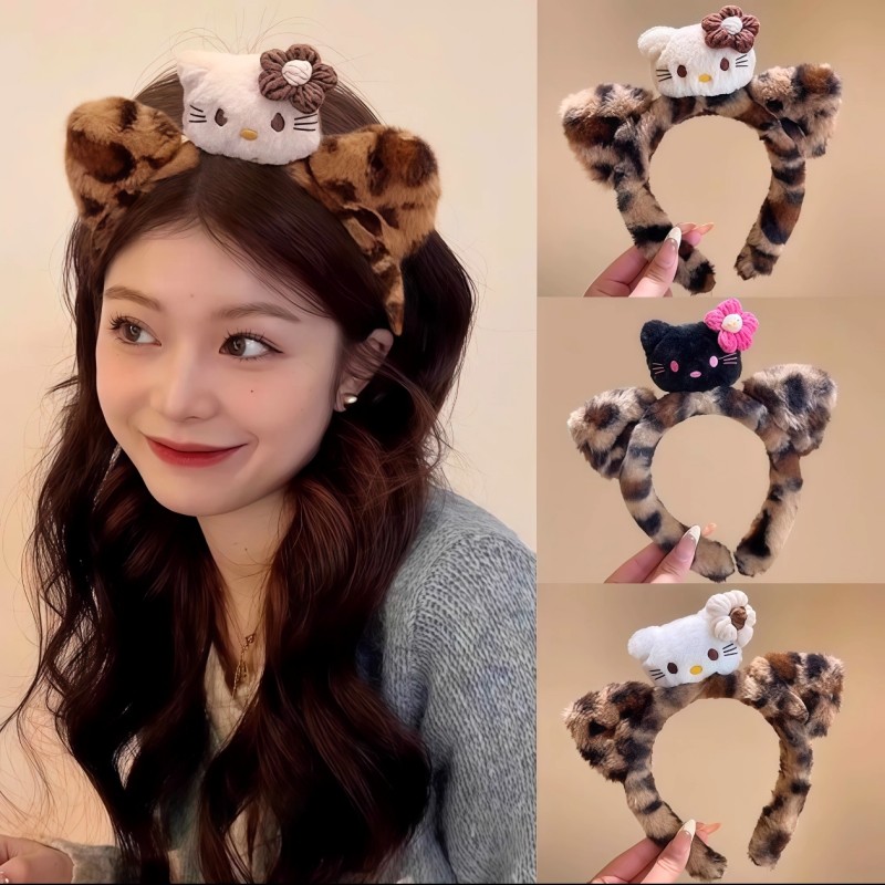 可爱豹纹猫咪毛绒发箍居家少女洗脸头箍化妆敷面膜压发发卡发饰品