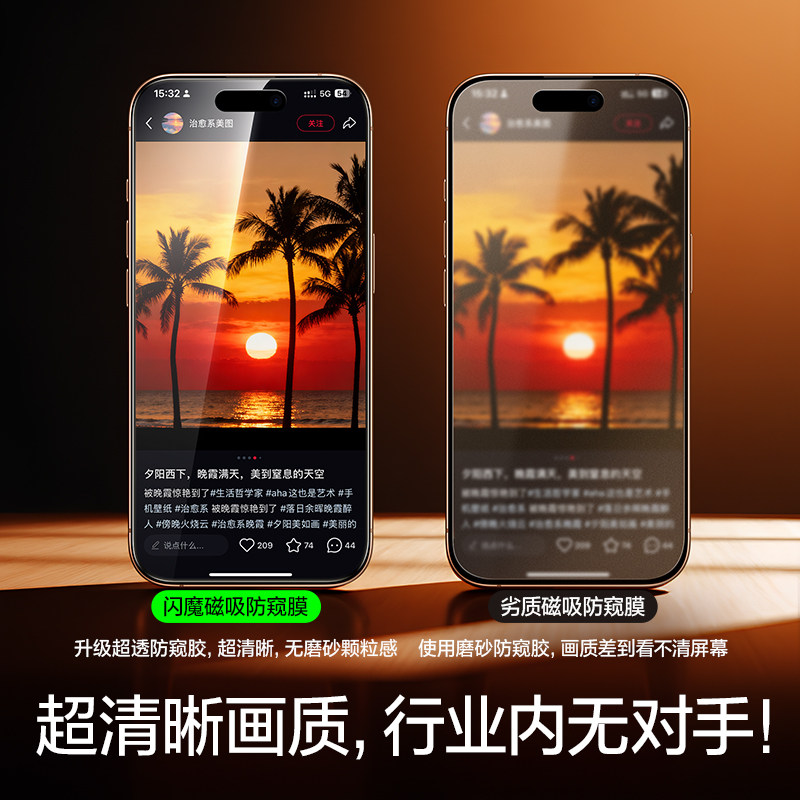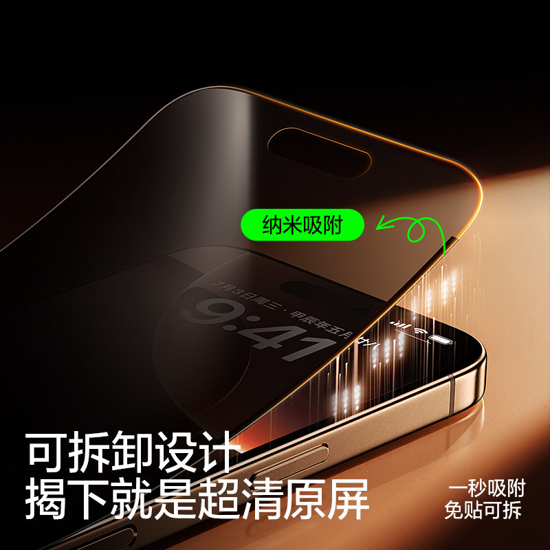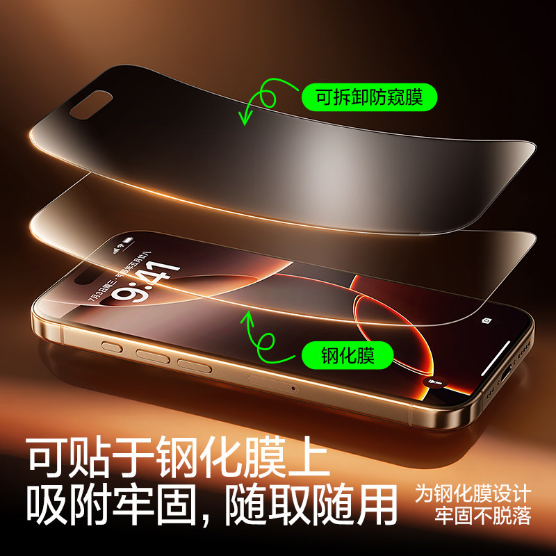 【可拆卸防窥】闪魔适用苹果17/16Promax可拆卸防窥膜iPhone15Pro钢化膜17Pro手机膜新款16pro全屏ip15保护pm