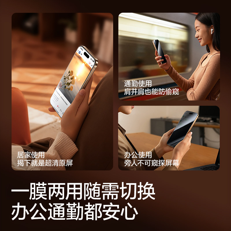 倍思无色防窥膜适用苹果iPhone17ProMax钢化膜16Pro无尘仓ip15手机贴膜AR抗反射360°防偷窥14防摔Air保护13