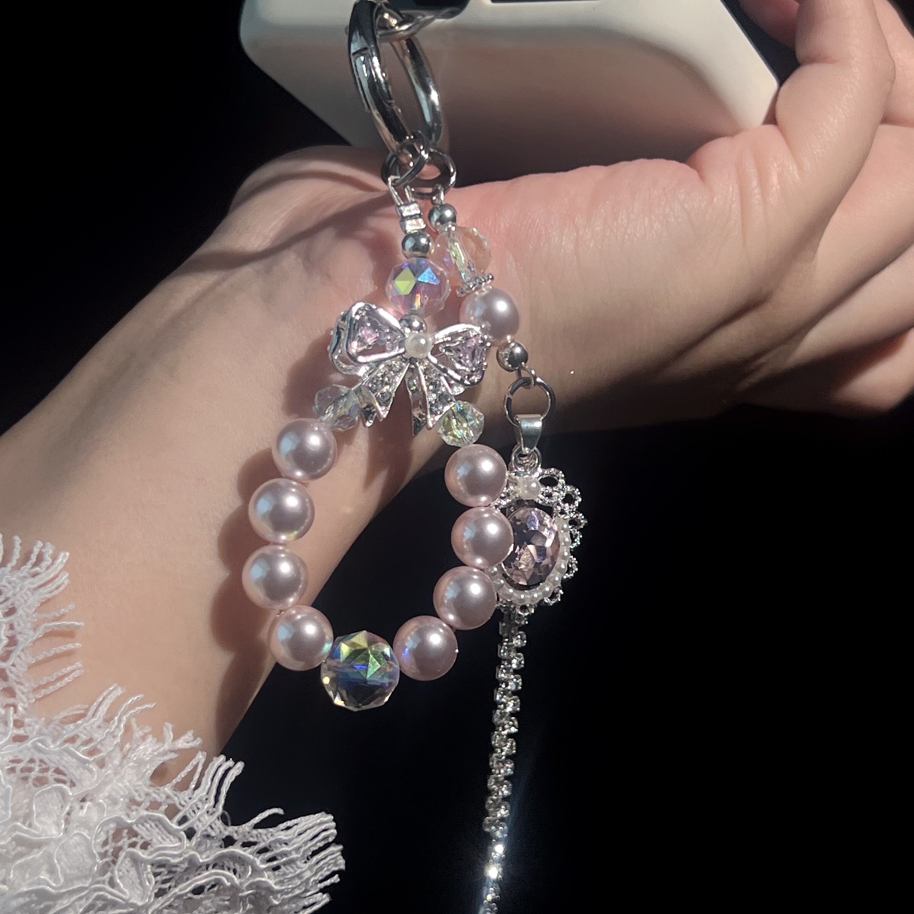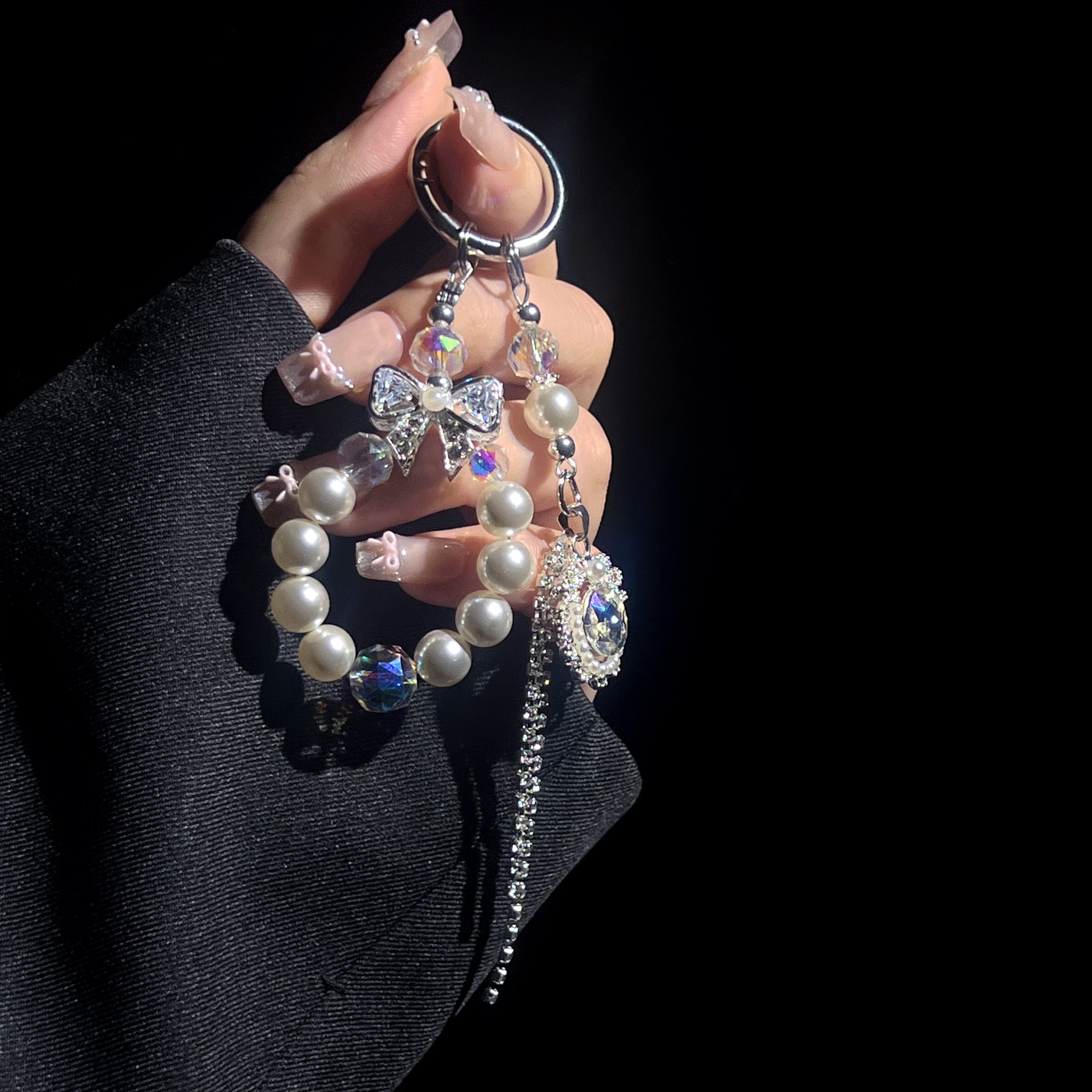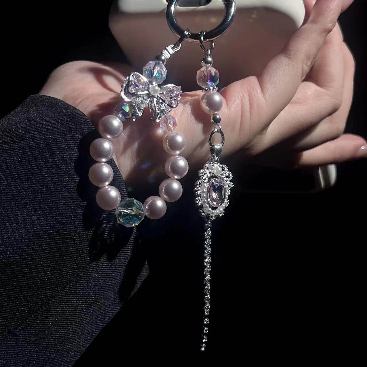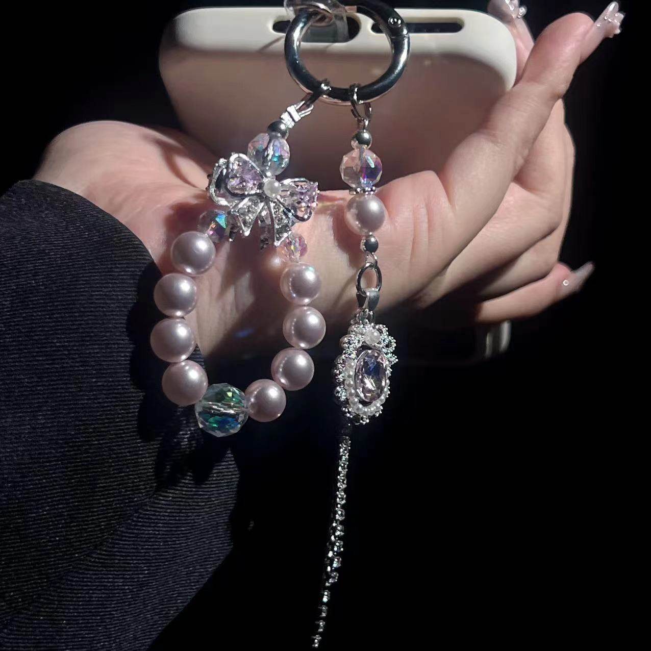 超显气质珍珠手机链轻奢锆石蝴蝶结高级感闪钻水晶流苏挂链手机链