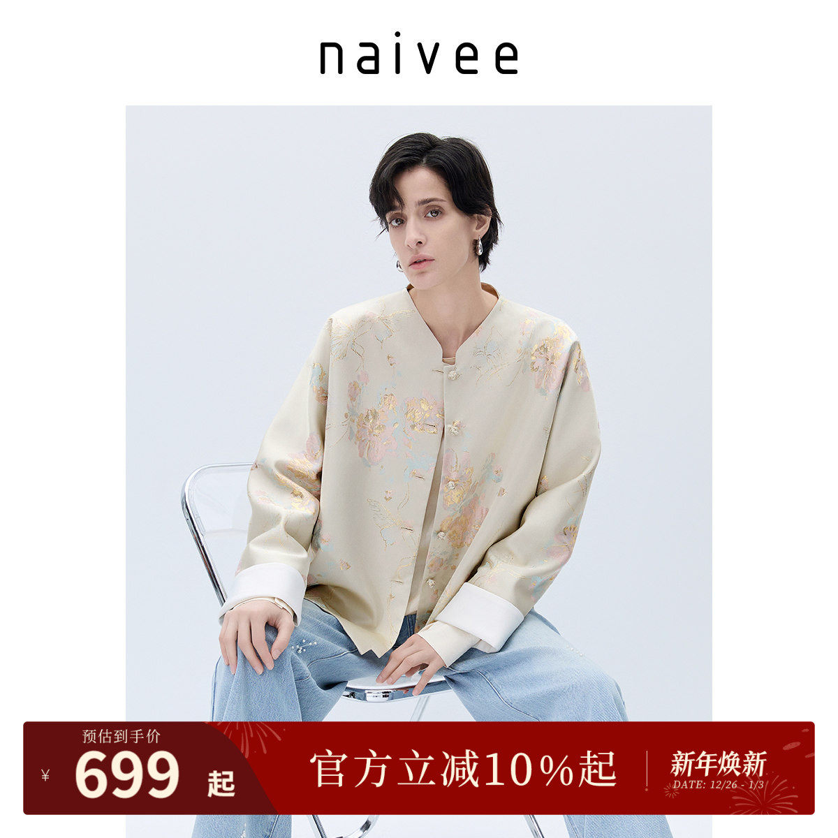 naivee纳薇25秋款新中式轻国风衣服重工提花短外套女老钱风穿搭