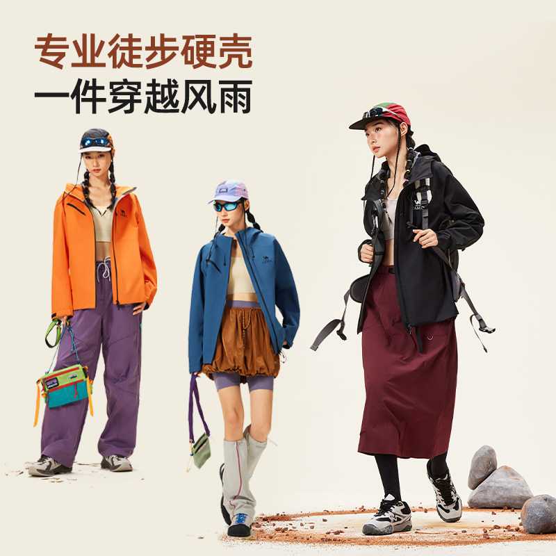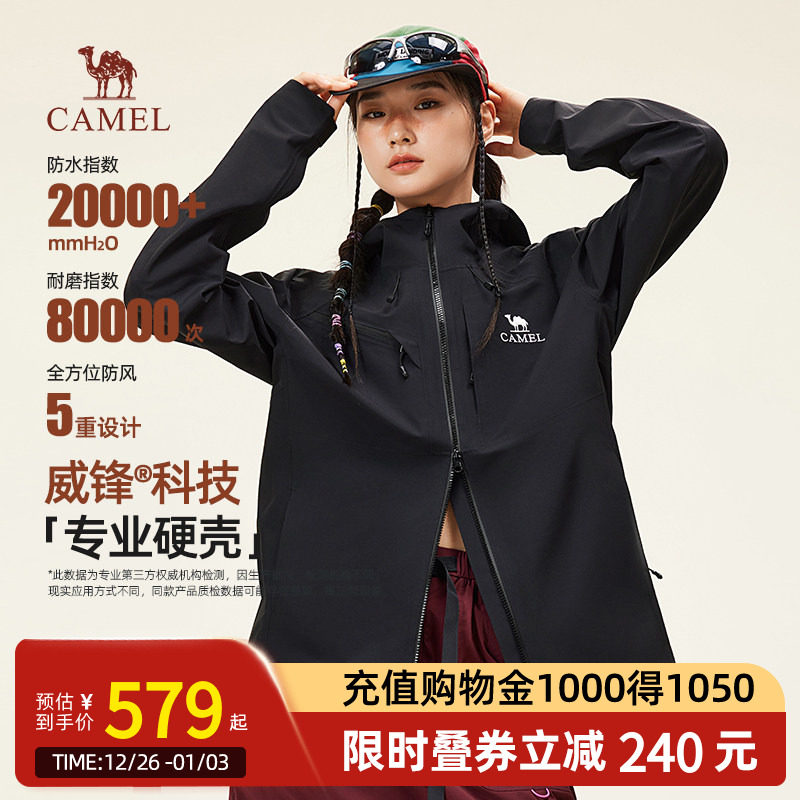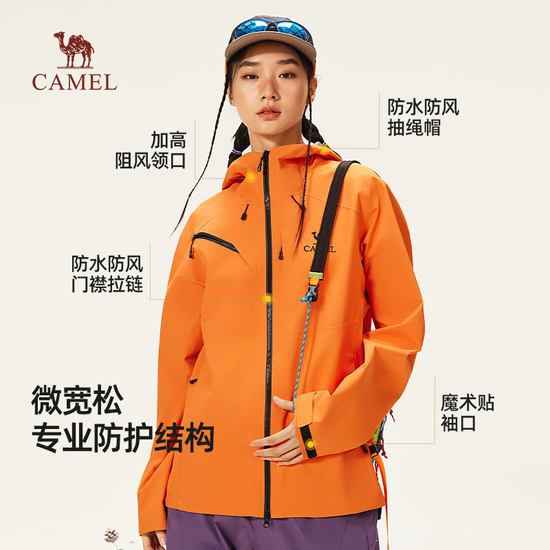 Camel骆驼女装冲锋衣户外春秋款三防登山服2025硬壳徒步连帽茄克