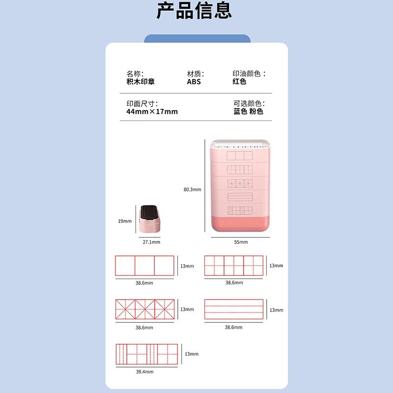 新款五层印面积木印章小学生田字格印章多功能教学奖励印章拼音四线三格教师改错订正神器五合一儿童学习鼓励