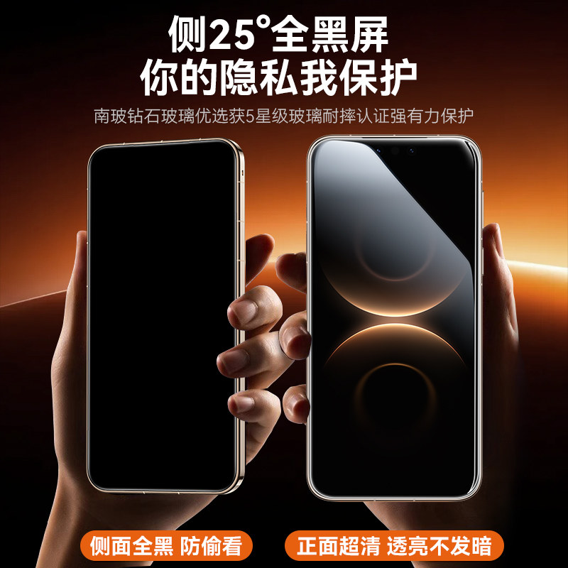 图拉斯小黑膜适用苹果17promax防窥膜iPhone16pro手机15防偷窥钢化膜ip14pm新款无黑边13高清12屏幕贴膜防摔