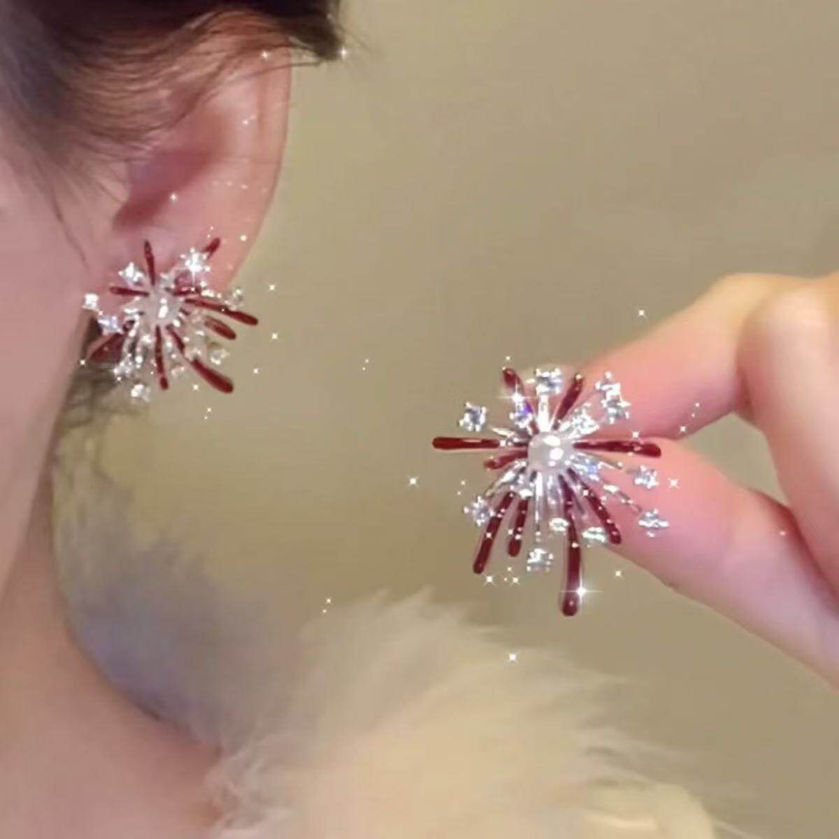 新年烟花 耳钉精致小巧红色梦幻花朵设计气质百搭轻奢耳饰女耳环