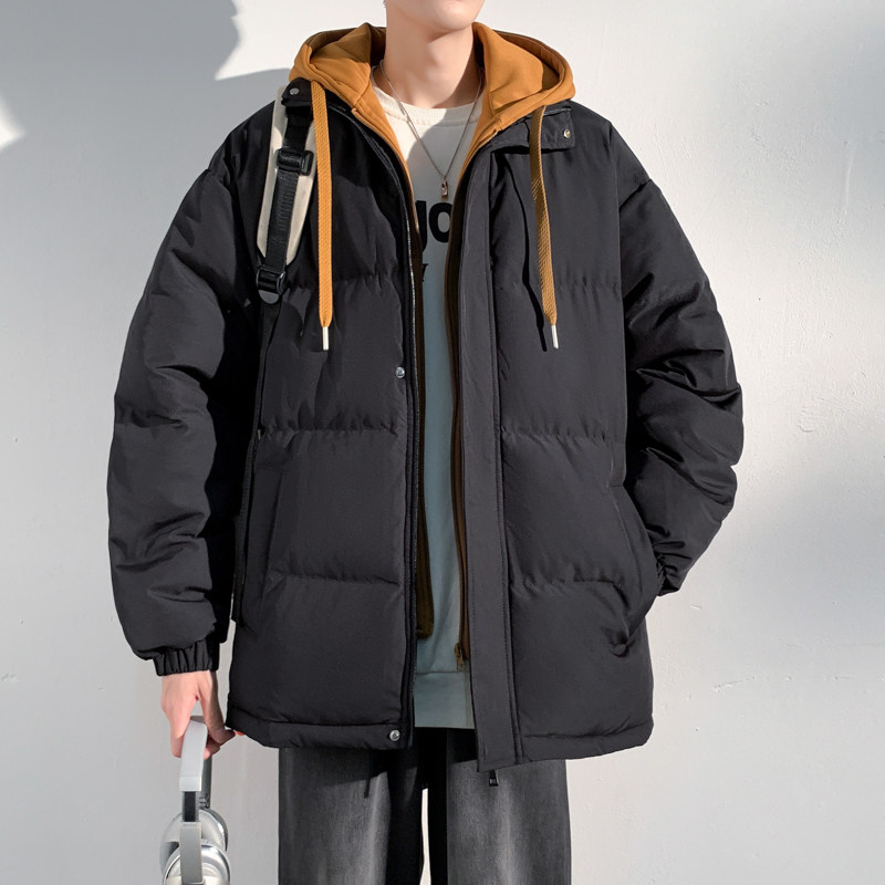 回力假两件棉衣男士秋冬季2025新款连帽棉服冬装棉袄男生加厚外套