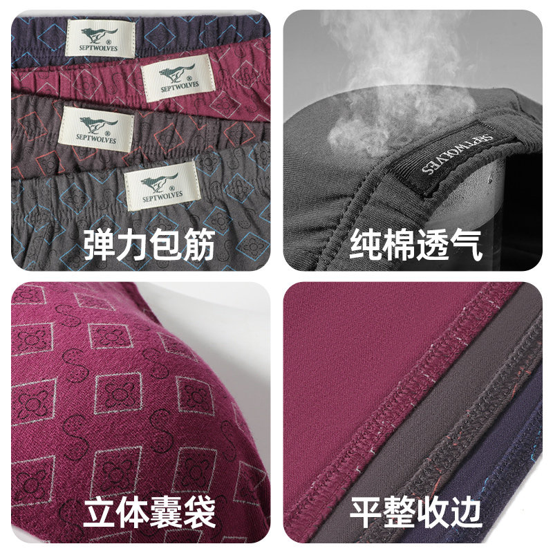 七匹狼4条装男士三角裤中老年纯棉短裤头爸爸内裤全棉k父亲节礼物
