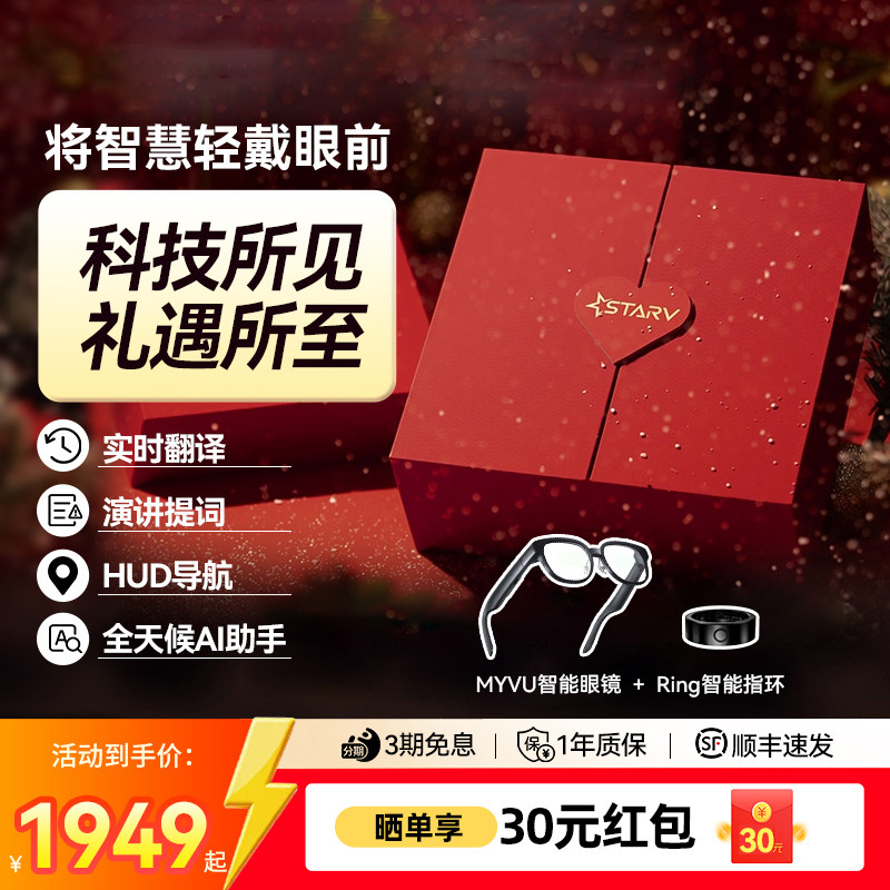 StarV MYVU ai智能眼镜智能戒指礼盒装 实时翻译演讲提词hud导航 ar智能眼镜双旦礼遇圣诞节礼物送朋友