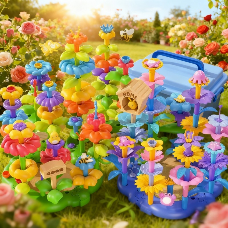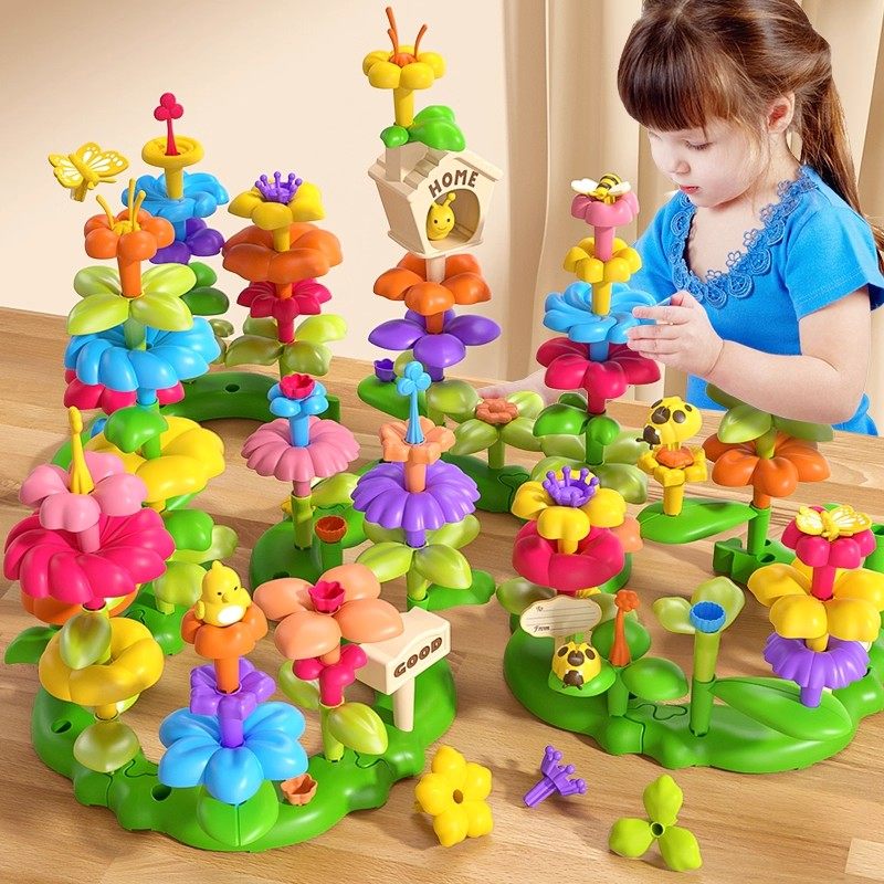 儿童百变花园插花积木diy花朵拼图宝宝3智力开发6男女孩益智玩具
