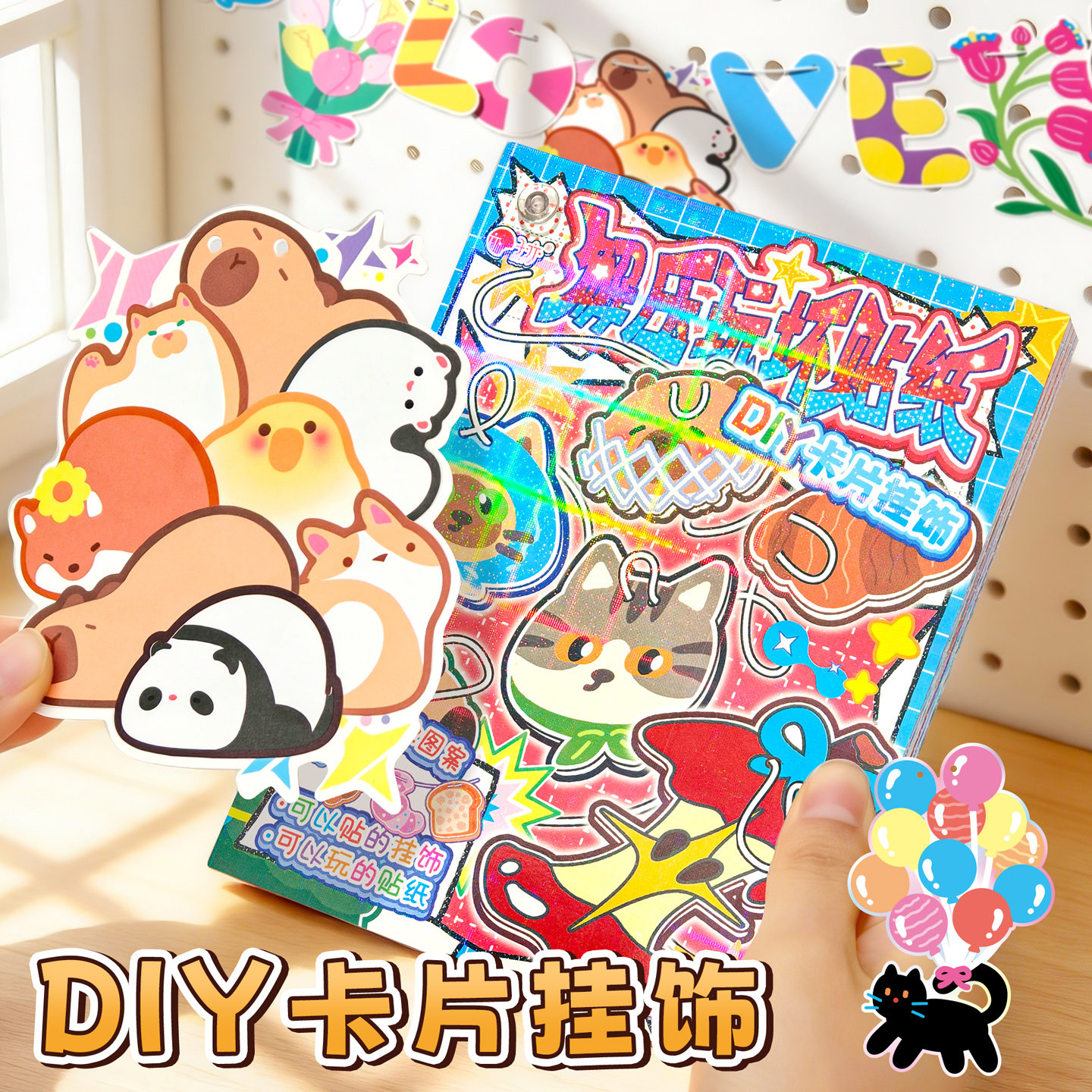 子亦原创解压玩坏贴纸DIY卡片挂饰儿童手工制作卡通图案贴纸益智玩具亲子互动小游戏材料创意生日礼物女孩
