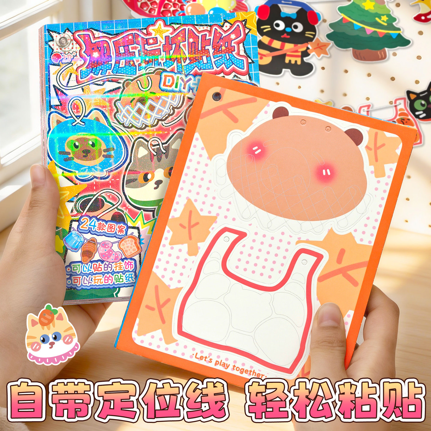 萌崽新款果冻贴纸安静书卡皮巴拉女孩免裁剪diy材料包儿童益智玩具