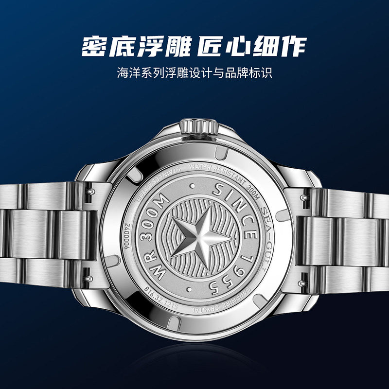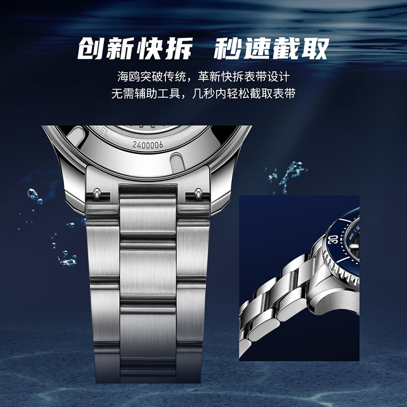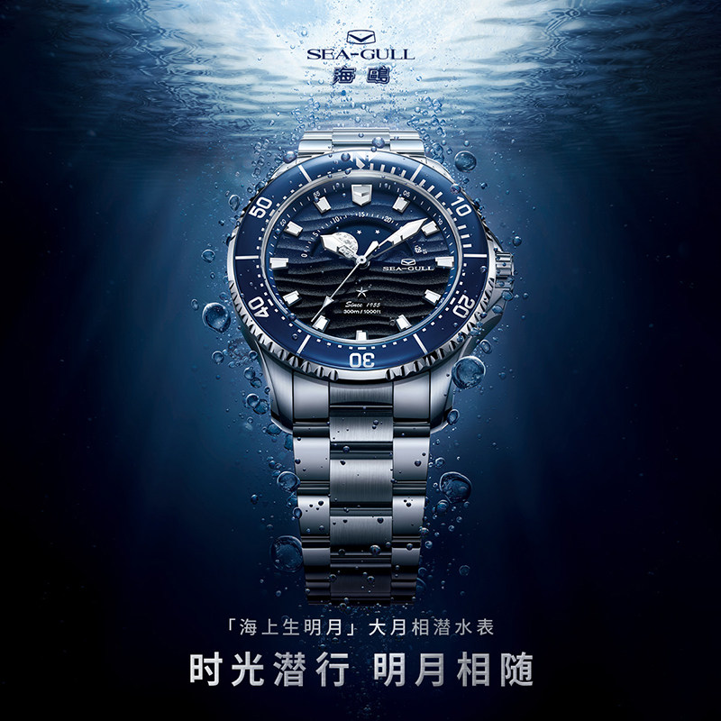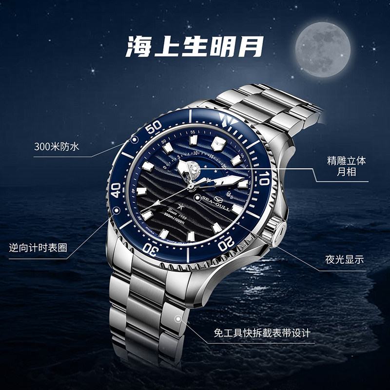 海鸥表手表海洋系列海上生明月夜光多功能月相潜水表机械表1215