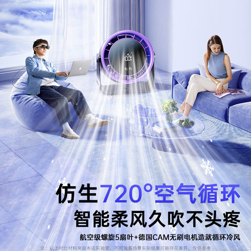 2026新款桌面小风扇静音办公室桌上usb充电风扇循环空调扇小型宿舍床上学生厨房专挂壁降温超长续航降温神器