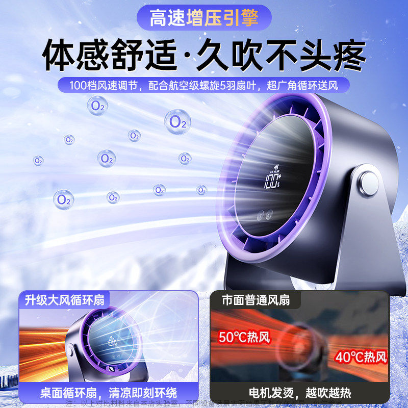循环制冷】桌面小风扇电风扇家用静音小型办公室2026新款usb充电续航学生宿舍夹式制冷卧室降温神器超长续航