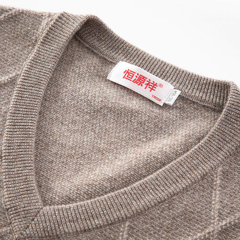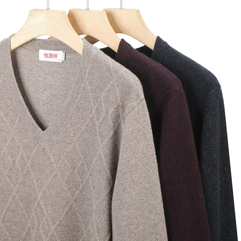 恒源祥品牌秋冬新款100%羊绒衫男士中年休闲针织衫爸爸装保暖毛衣