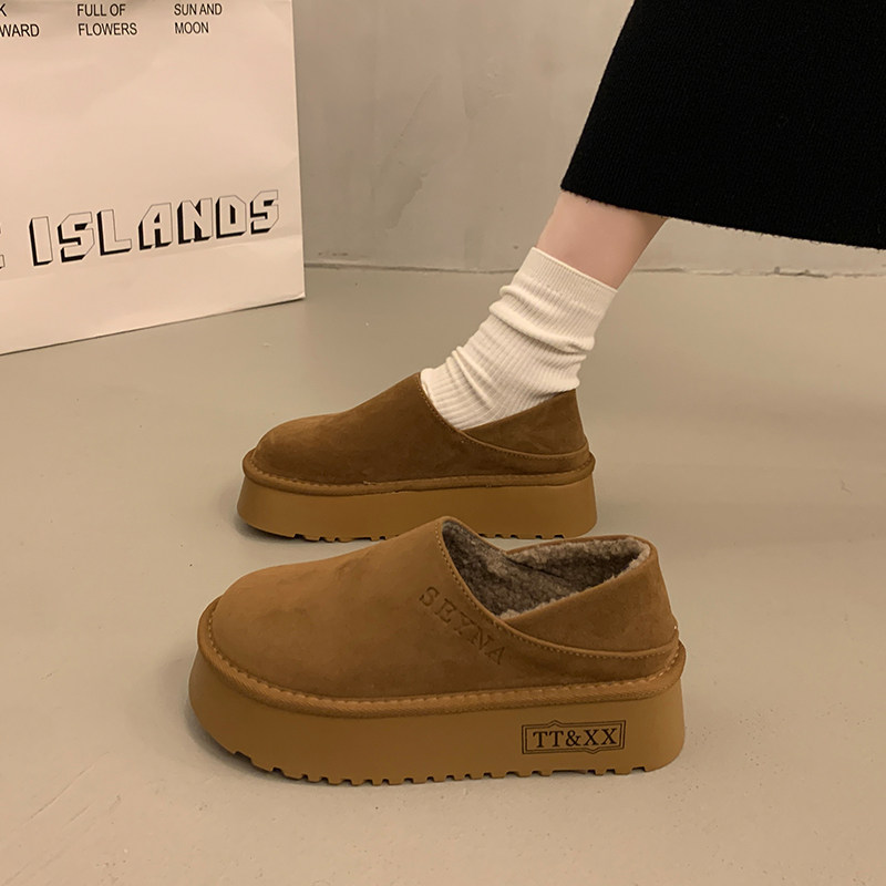 低帮厚底雪地靴女2025新款冬季懒人一脚蹬毛毛棉鞋加绒加厚女鞋子