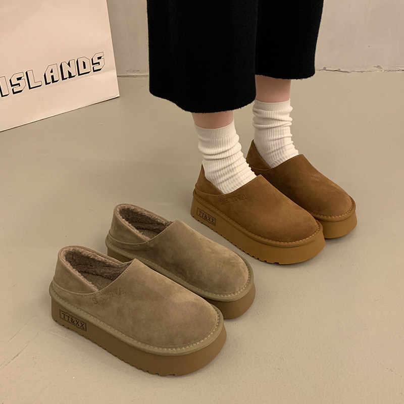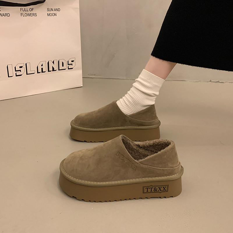 他她女孩厚底勃肯鞋女加绒保暖雪地靴2025冬一脚蹬棉鞋面防滑短筒