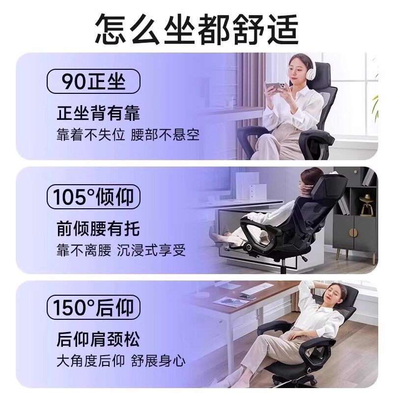 人体工学椅家用护腰电脑椅宿舍椅子可躺舒适久坐电竞办公椅座椅