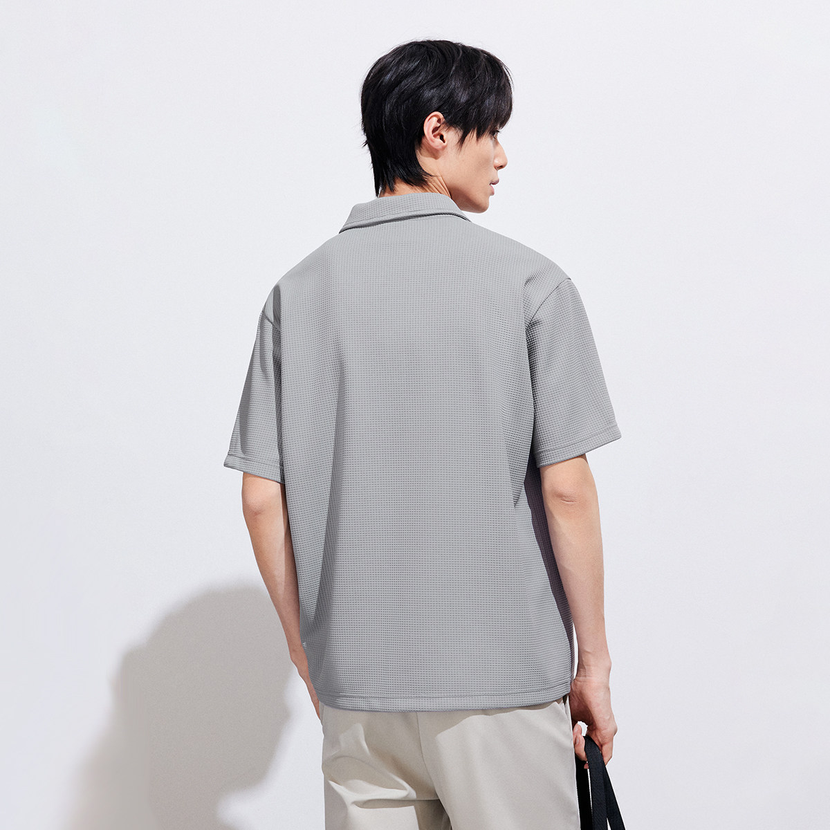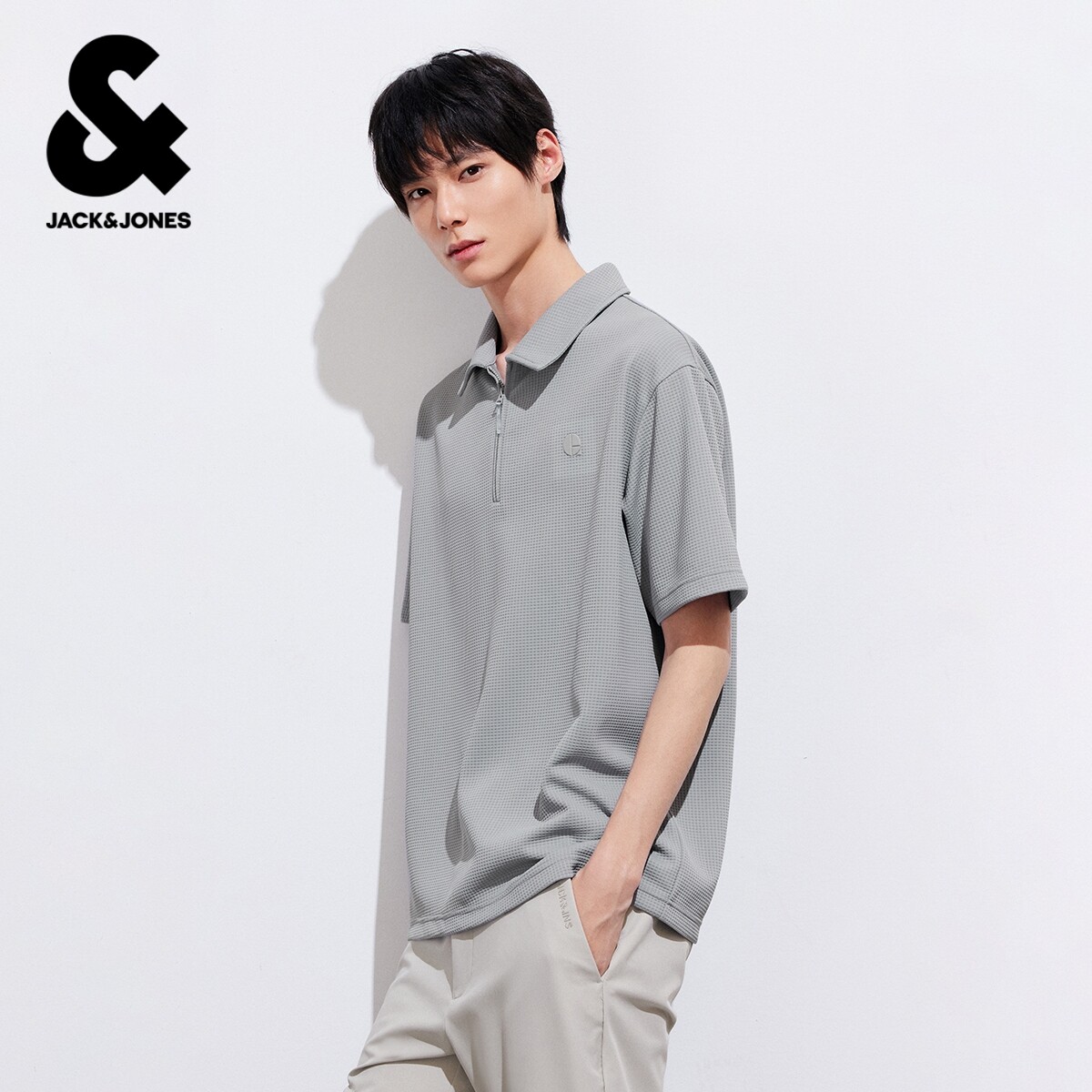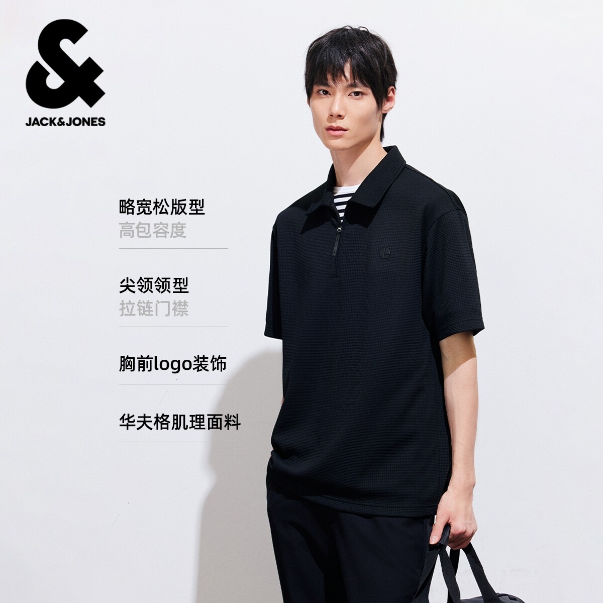 [华夫格]杰克琼斯男装春季polo衫上衣宽松休闲翻领肌理感短袖T恤