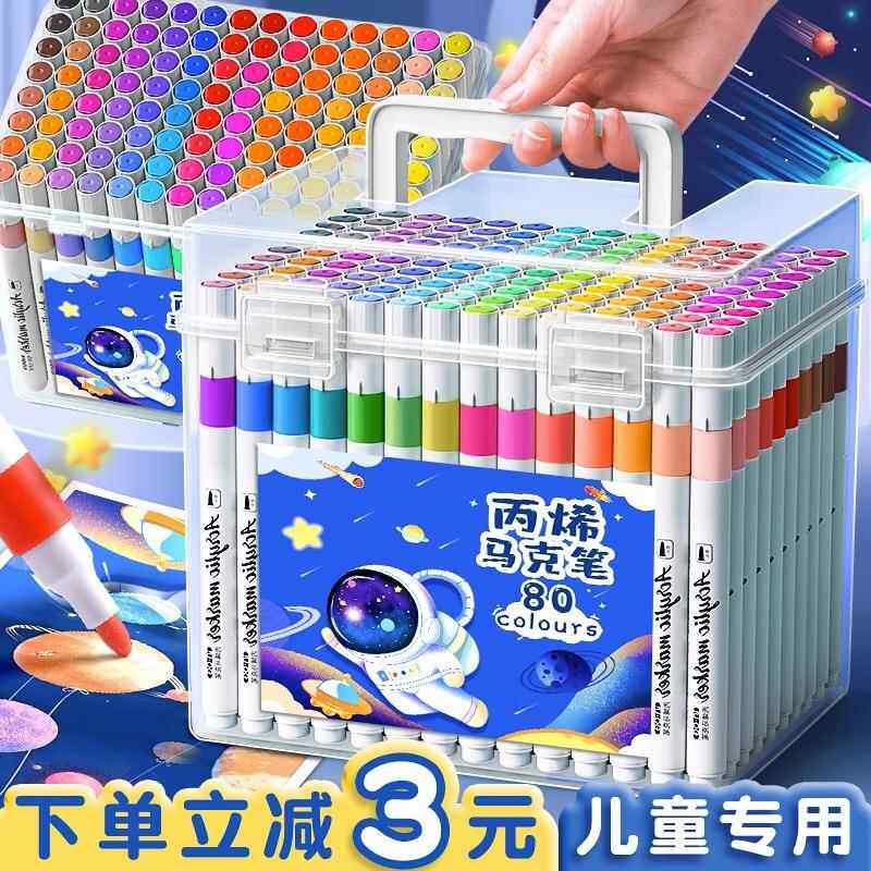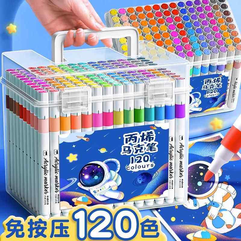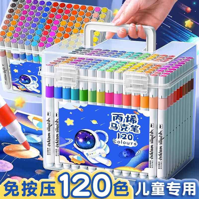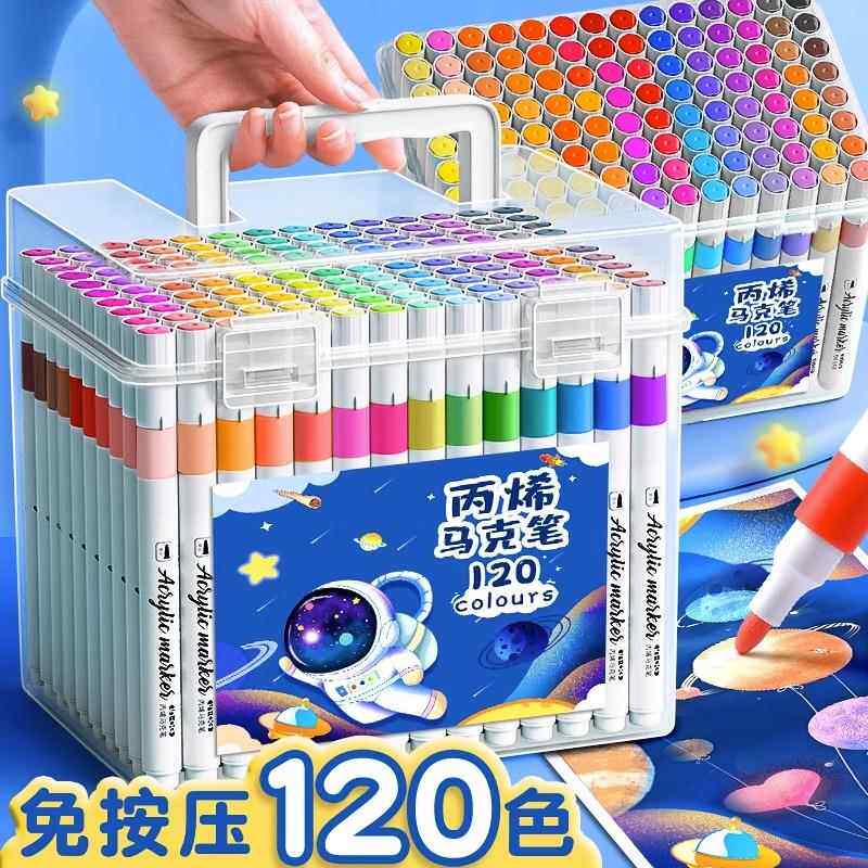 60色48色大容量丙烯马克笔盒装儿童专用可叠色不透纸幼儿园学生版软头丙烯笔可水洗水性水彩笔小孩画画笔